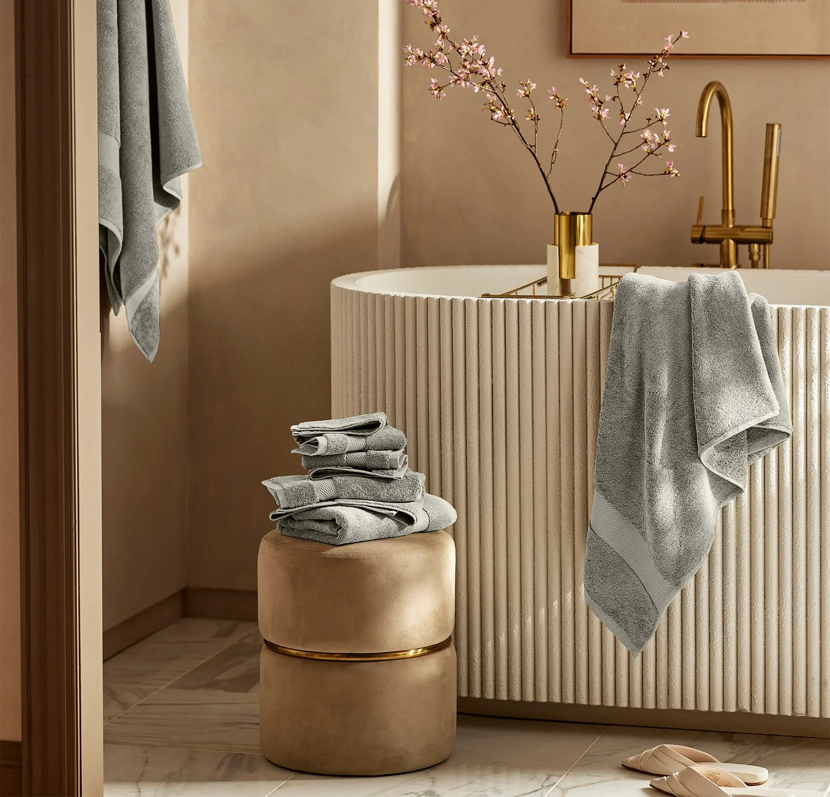 Cotton is an accessible textile that adds comfort to any room. We love to use plush, oversized cotton towels in a bathroom and beautifully woven Turkish towels in the kitchen. Egyptian cotton or Pima cotton sheets are a wonderful choice for bedding such as sheet sets or duvets.