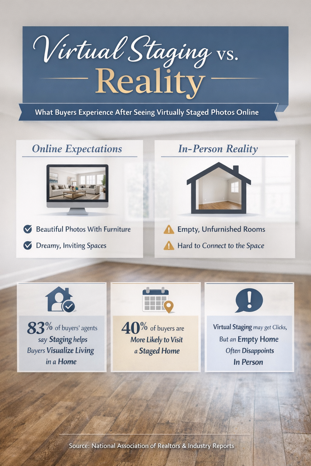 Virtual staging has become more common in real estate listings, especially with the upswing in AI and as homes compete for attention online. Digitally added furniture can make listing photos look polished, but we often see a problem once buyers step inside the home.